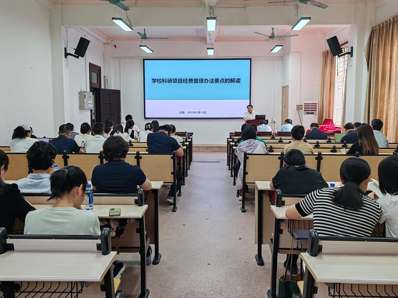为进一步落实学校对于科研项目管理的最新政策要求,加强科研项目经费使用规范,2025年5月12日,我院组织召开科研项目经费管理办法要点解读会,学院领导班子、全体教职工参加会议。会议由我院副院长陆健强主持。