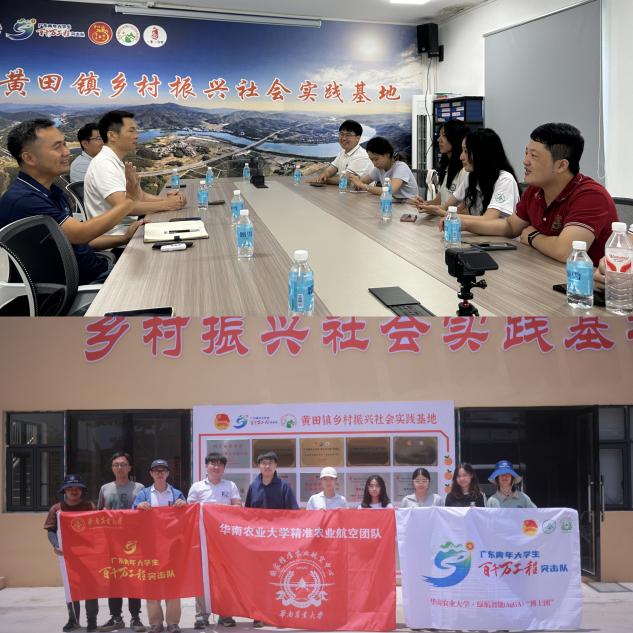 除科研内容外,突击队成员还在黄田镇百千万工程基地,与驻黄田镇帮镇扶村工作队队长黄毅飞、副队长黄志青、广东青年突击队四会四会县级工作站站长李达进行了交流会。交流会上突击队介绍了团队组成与工作安排简介、并进行了精准农业航空技术的科普推广,对黄田镇的柑橘产业发展、当地产业活力与乡村产业发展的困境进行了解,并针对柑橘病害的防治手段进行了深入交流。