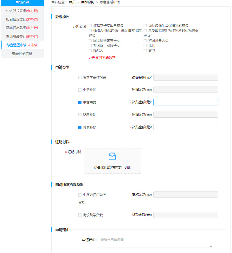 2.进入“绿色通道”模块,根据自身需求选择“申请类型”;