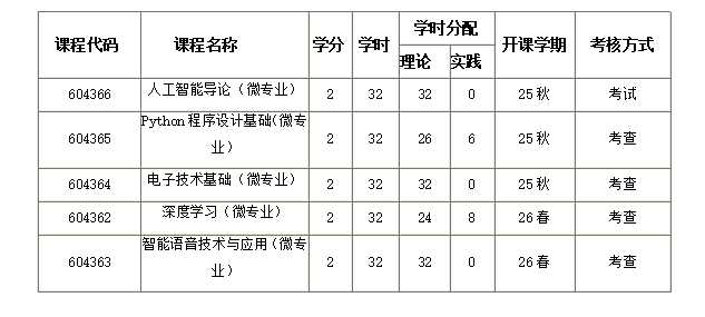 +人工智能微专业允许学生修读年限为1年,最长年限不超过1年,学生需修满10个学分,微专业课程不设补考和重修环节。学生主修专业学业结束,无论毕业或者结业离校,微专业学习同时终止。