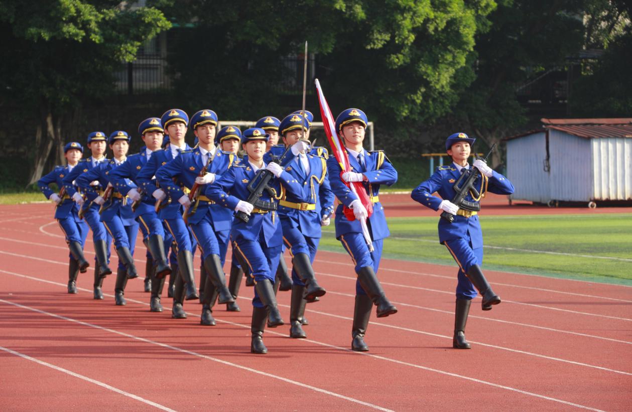 怀揣着饱满的激情,迈出着坚定的步伐,国旗队整装待发,护卫着胸前的五星红旗。鲜红旗帜迎风展扬,奋进脚步坚定铿锵;队员们身姿挺拔、意气风发,每一步都彰显着电智学子蓬勃向上的青春活力与积极进取的精神状态。