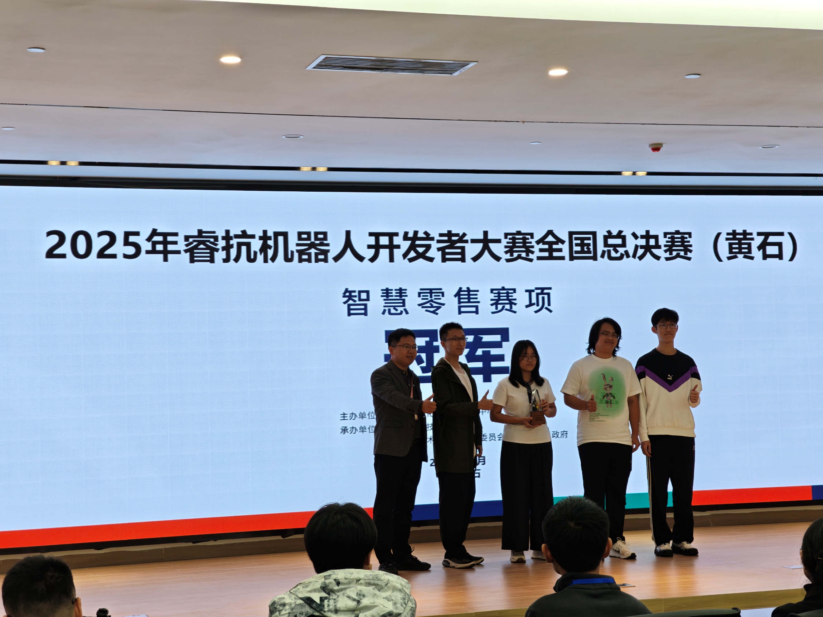 2025年10月17日至19日,2025睿抗机器人开发者大赛(RAICOM)全国总决赛在湖北黄石未来科技城创业中心顺利举办。电子工程学院(人工智能学院)我院陆健强、熊万杰、董昕、王婷、高鹏等多位老师带领入围智慧零售赛项全国总决赛的5支队伍参加此竞赛,并全部获得奖项。我院学子获得一等奖1项并荣获该赛道冠军奖项,、二等奖4项,其中,电子信息工程系学生曾启轩、梁潜儿、李博轩、李允舜荣获该赛道冠军奖项,总体成绩喜人。