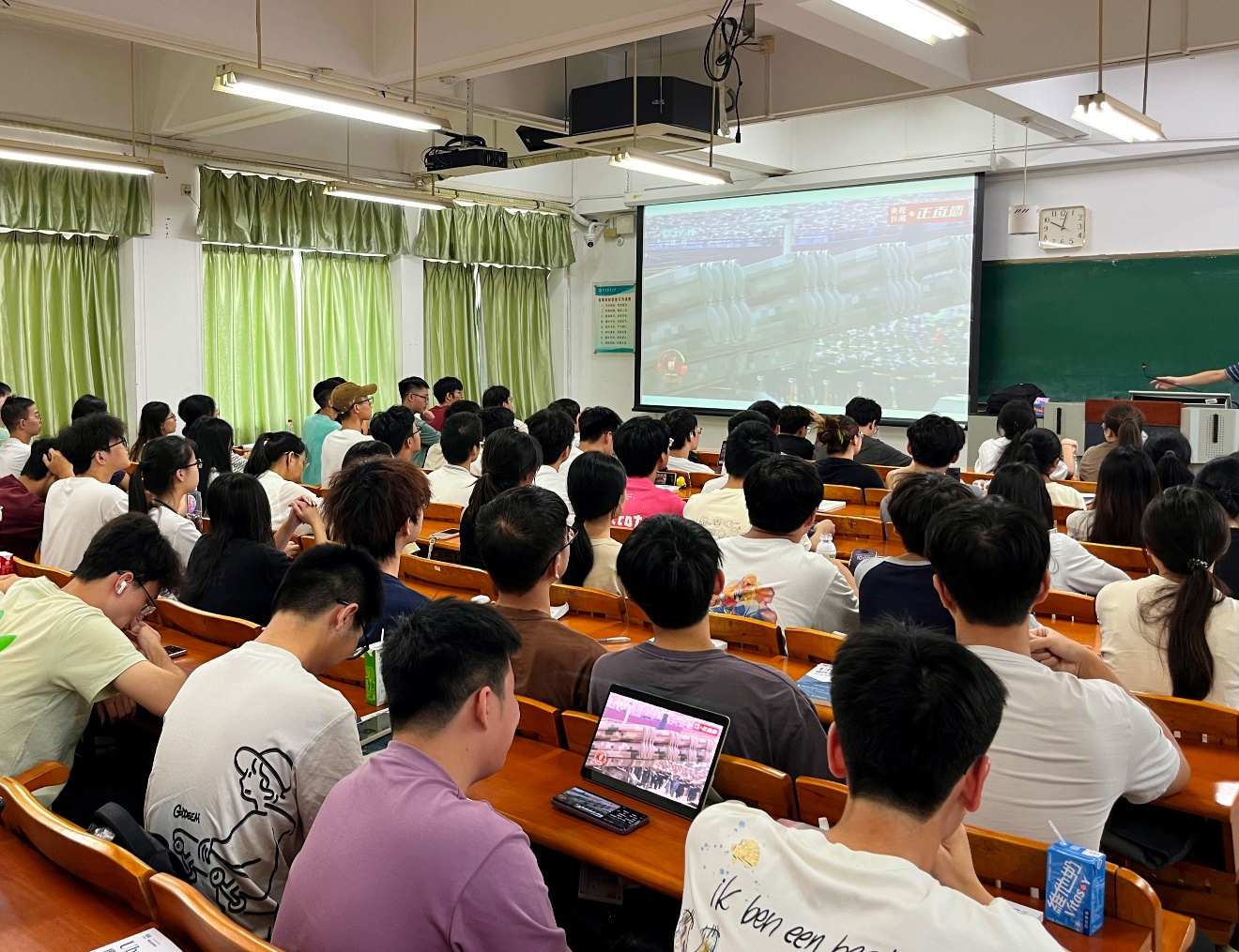 学院统筹安排、有序组织,分别在院楼207会议室、华山学生活动中心、社区服务中心及教三多个课室设立集中观看点。全院教职工、各党团支部成员、团委学生骨干及2025级新生踊跃参与,全程聚精会神收看直播。当受阅部队迈着铿锵有力的步伐经过天安门广场,一架架战机呼啸掠过,一件件现代化装备庄严亮相,现场不时传来阵阵赞叹与热烈掌声,浓厚的自豪感洋溢在每一处收看现场。