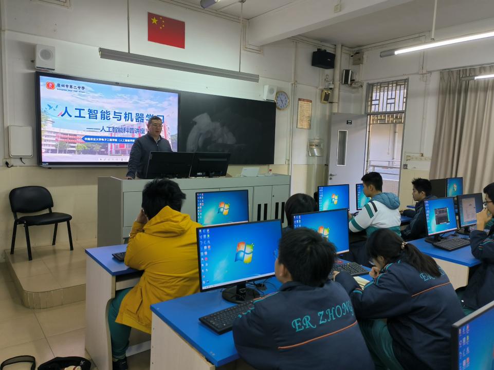 12月24日,我院院长李震、电子信息工程系教师高鹏到广州市第二中学高中部,以“人工智能与机器学习”为主题,为现场学子带来了一场兼具专业性与趣味性的人工智能课外科普讲座,搭建起高校与高中之间的人才培养桥梁。