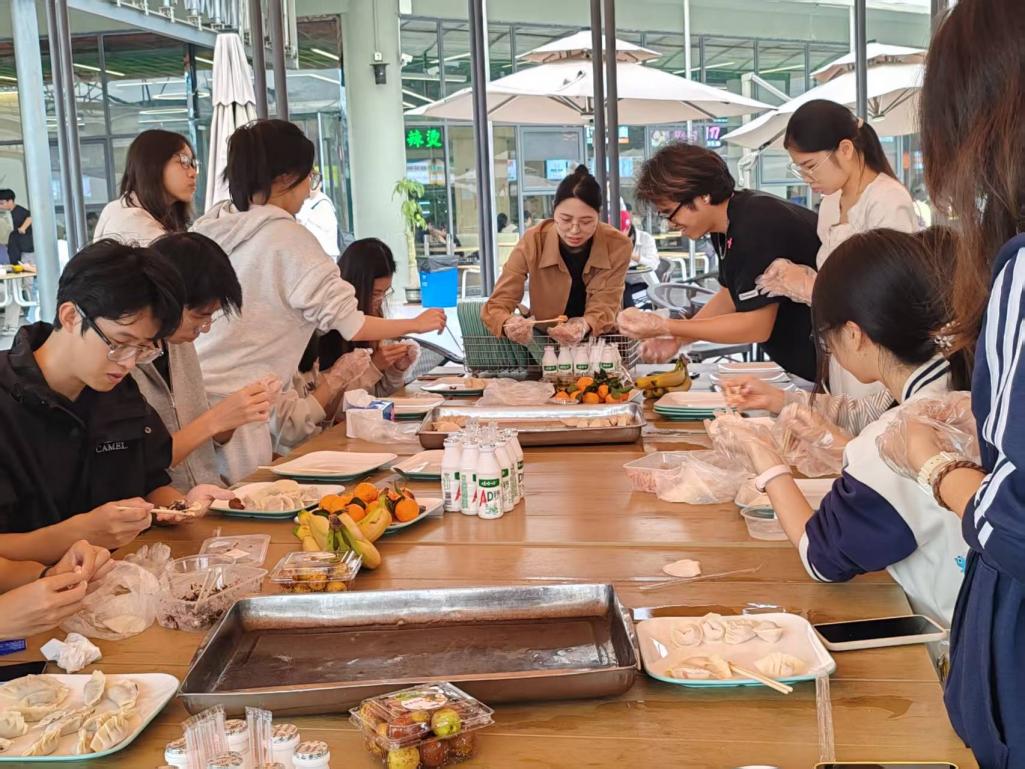 活动现场暖意融融,长桌旁师生们分工协作、默契配合,手法各异的饺子很快摆满了托盘,圆润的汤圆也在锅中翻滚。大家一边制作传统美食,一边畅谈生活与学习,现场洋溢着温馨热闹的氛围。