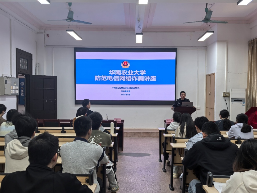 为切实提升学生防范电信网络诈骗的意识和能力,遏制校园网络诈骗案件高发态势,守护学生财产安全,3月6日,人工智能学院在院楼207召开防范电信网络诈骗宣讲会。会议邀请了广州市公安局天河区分局反诈中心华农警务室的陈东斌警官分享预防电信诈骗方法,学校保卫部政保内勤科吴浩轩、五山派出所警官韩旭出席会议,学院全体本科生生活委员、研究生班长参加会议。