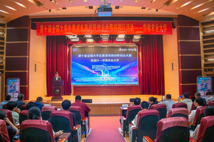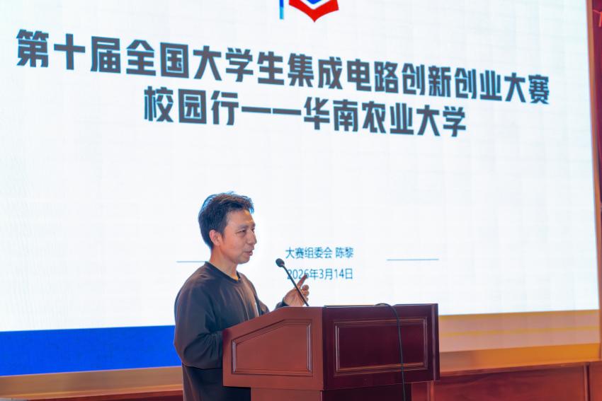 2026年3月14日下午,第十届全国大学生集成电路创新创业大赛校园行活动在华南农业大学图书馆报告厅隆重举行。大赛组委会代表、命题企业代表以及校内师生代表参加活动。活动由学院党委副书记梁耀明主持。