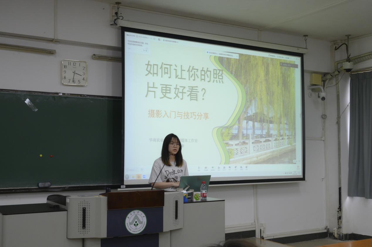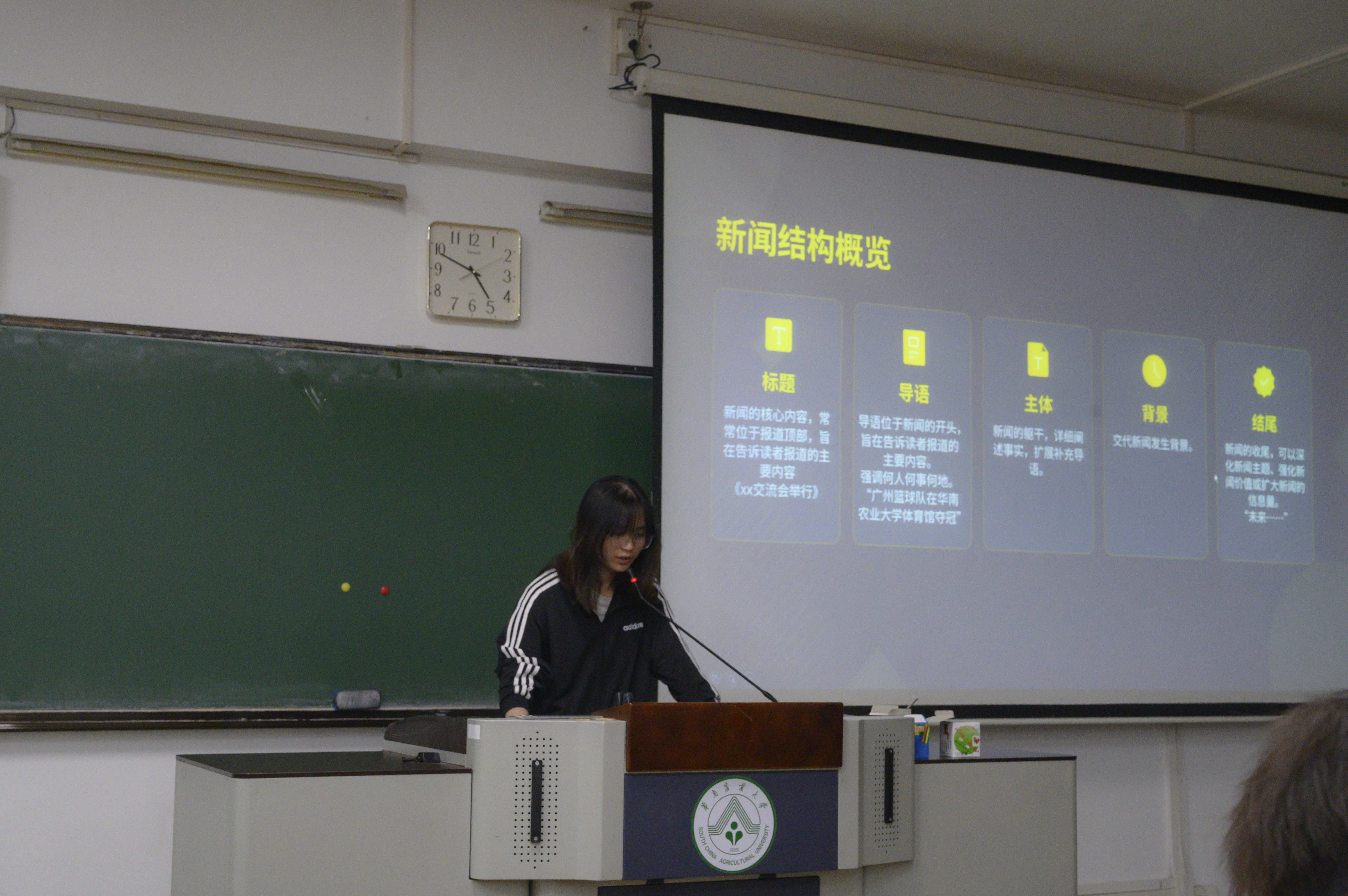 本次培训聚焦摄影技巧与新闻写作两大核心模块,邀请华南农业大学新禾融媒体摄影部胡欣玲、采编部邱盈月等经验丰富的同学担任主讲。