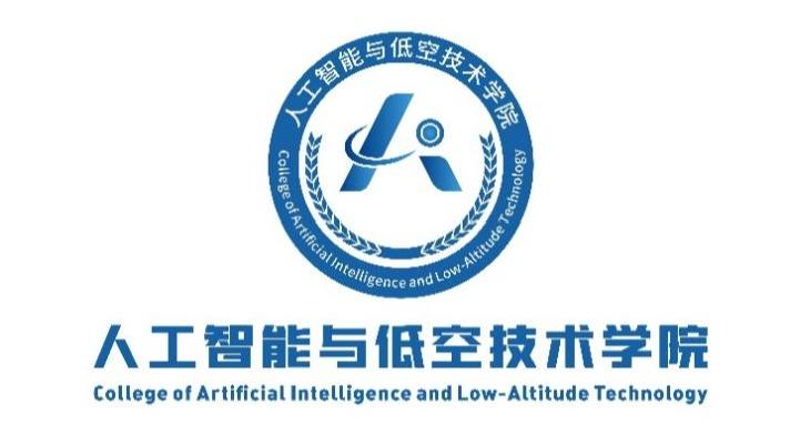 设计理念:该院徽围绕人工智能与低空技术两大核心,以大脑轮廓体现智能内核,蓝色弧面形似无人机螺旋桨,内嵌电路风格“AI”字样,突出科技感。整体采用圆形徽章与科技蓝主调,将智能与低空视觉融合,彰显学院以AI赋能低空产业的办学定位。