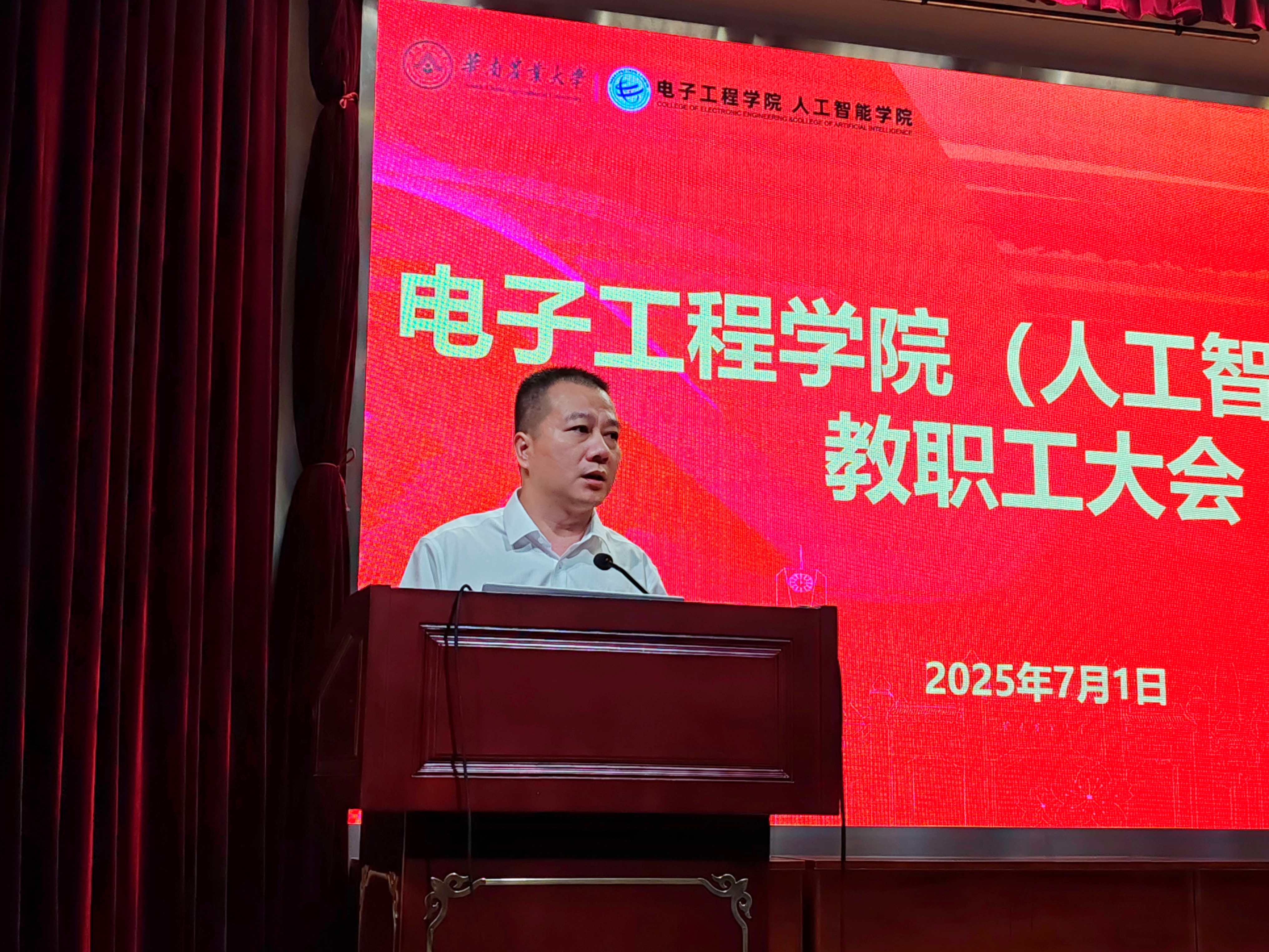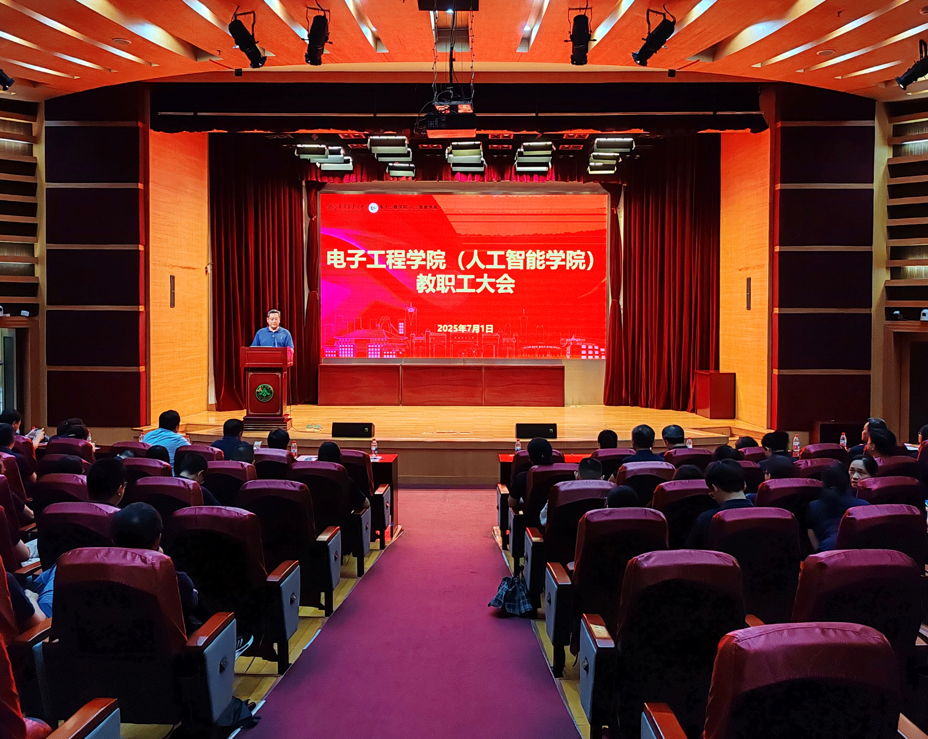 学院党委书记林伟波在会上发言。他指出,当前学校正全力推进学科建设发展的长远规划与谋篇布局,后续将推出一系列重大举措,全方位推动学校“双一流”建设取得新成效。他强调,面对人工智能、集成电路等国家关键核心技术攻关的迫切需求,我院学科专业迎来前所未有的发展机遇。他号召全院教职工要戮力同心,聚焦关键核心领域,为学校高质量发展贡献更大力量。