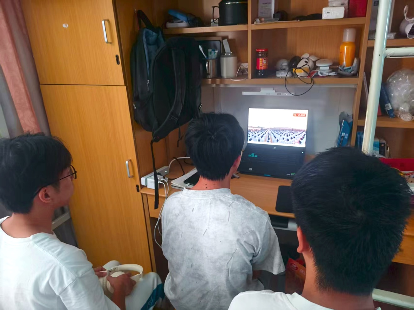 (团员学生在宿舍自主收看)