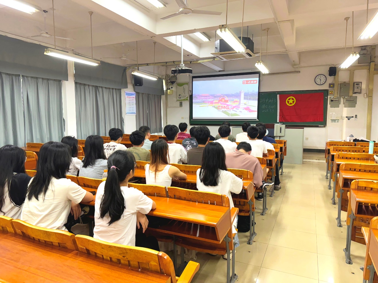 各学生团支部将观看大会与主题团日紧密结合,灵活开展学习教育。有的支部组织集体观看,同学们神情肃穆、认真聆听重要讲话,共同感受大会所带来的震撼与力量;也有支部以宿舍为单位,同学们围坐屏幕前,在融洽温馨的氛围中交流体会、回顾历史,真挚表达对祖国日益强大的由衷自豪。